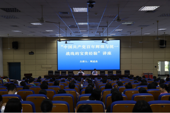 6月22日下午,ky官方网站邀请湖南省社会主义学院一级巡视员周述杰教授来ky官方网站作题为“中国共产党百年辉煌与统一战线的宝贵经验”的专题讲座。讲座在学术报告厅举行,由党委副书记汤文胜主持。ky官方网站无党派人士、党外知识分子及留学归国人员200余人到场参与学习。