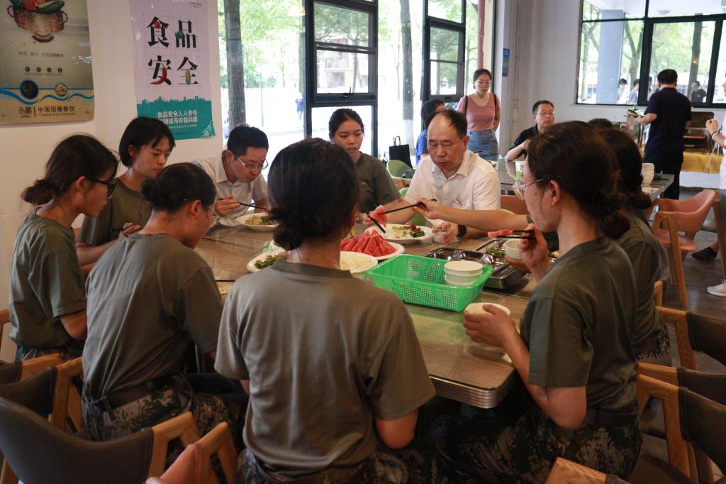 中午,党委副书记、校长黄立宏一行来到学生餐厅,与新生和军训教官们共进午餐。黄立宏对军训教官的辛勤付出表示感谢,勉励他们带好军训,展现出ky官方网站军训的独有特色。同时,黄立宏还对新生提出,军训能够帮助大家进一步成长,一定要努力,学好大学入学的第一课。