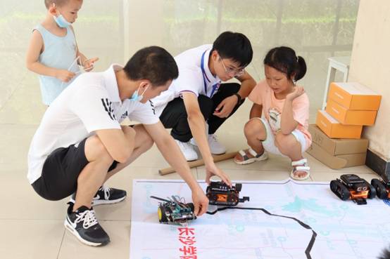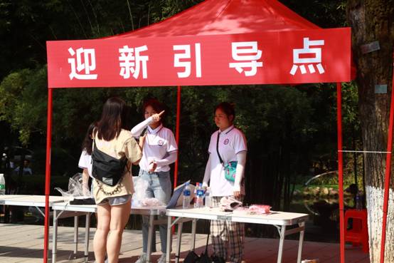 来自马栏山新媒体学院的学生讲解员向报到的家长和学生介绍学院概况;机电学院报到点布置简洁明快,志愿者团队分为机动组、核验报到组、迎新接待组,突出机电院“热情、细致、周到、温馨”的迎新特点;法学院在迎新处安排了新生穿法袍拍照活动,新生可手持迎新时发放的带有自己名字的铭牌和“法小意”标牌,体验初次穿法袍的感觉;电信学院展示自己学生制作的智能小车,帮助新生更好理解专业。