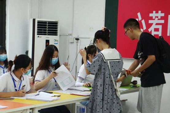 校团委组织40位学生志愿者投身于学校的各个迎新岗位,各学院也派出各院志愿者队伍,帮助新生更加高效地报到。20级工程造价专业的旷迈成同学是今年土木院的迎新志愿者。他早上六点半便已到岗,烈日炎炎,长沙的35度高温下,他忙得满头大汗,却依然积极地帮助和服务每一位新生。问及为何选择做此次迎新的志愿者,旷迈成说:“去年报到时,我受到了许多学长学姐的帮助,让第一次离家上学的我感受到无比的温暖。所以,我希望将这种善意传递,让新一届学生也能感受到如家般的温暖与体贴。”