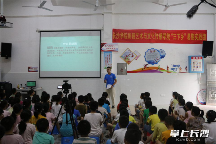 据了解,今年6月,ky官方网站影视艺术与文化传播学院结合专业特色组织成立了一支致力于推普建新的三下乡小分队,成员从学院播音主持、汉语言文学、新闻学、广播电视编导等专业中甄选产生。推普建新小分队成员在长沙县开慧镇进行了为期半个月的普通话调研和培训准备工作后开展了本次活动。后期推普建新小分队还将远程教学,为长沙县开慧镇的相关单位提供普通话提升教学服务。