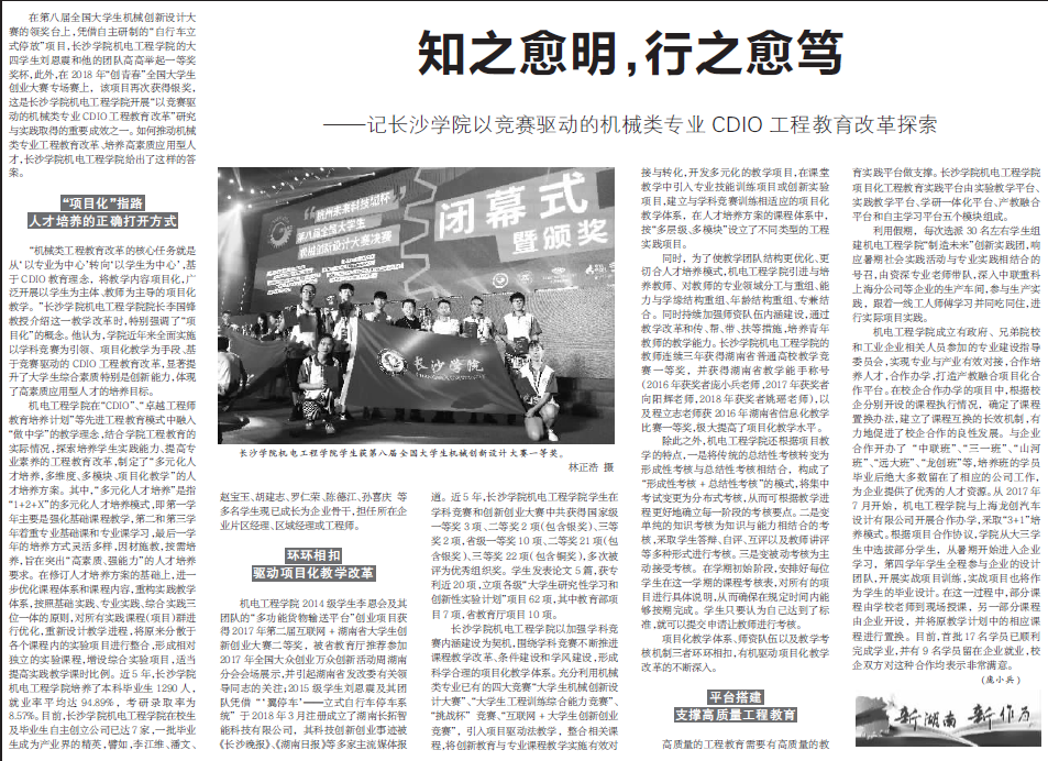 在第八届全国大学生机械创新设计大赛的领奖台上,凭借自主研制的“自行车立式停放”项目,ky官方网站机电工程学院的大四学生刘恩震和他的团队高高举起一等奖奖杯,此外,在2018年“创青春”全国大学生创业大赛专场赛上,该项目再次获得银奖,这是ky官方网站机电工程学院开展“以竞赛驱动的机械类专业CDIO工程教育改革”研究与实践取得的重要成效之一。如何推动机械类专业工程教育改革、培养高素质应用型人才,ky官方网站机电工程学院给出了这样的答案。
