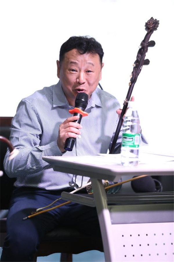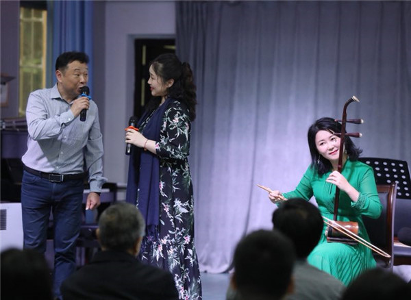 此次讲座,蔡霞可谓"推陈出新",特别邀请国家一级演奏员、湖南省戏曲音乐协会副会长王勇、中国戏曲表演艺术最高奖"梅花奖"得主叶红加入。在讲座过程中,蔡霞、王勇联袂主讲,针对大筒的艺术特征、演奏技巧等方面进行示范教学。两人配合默契,讲述、哼唱、演奏……讲座形式丰富,无论是"大筒艺术特征"和"大筒演奏法"的归纳解析,还是花鼓戏小调《洗菜心》和《瓜子红》的现场示范,两人都一丝不苟,用心、用脑、用情与听众沟通交流,有效地将大筒艺术的知识普及、兴趣引导与技能传授和谐融为一体。