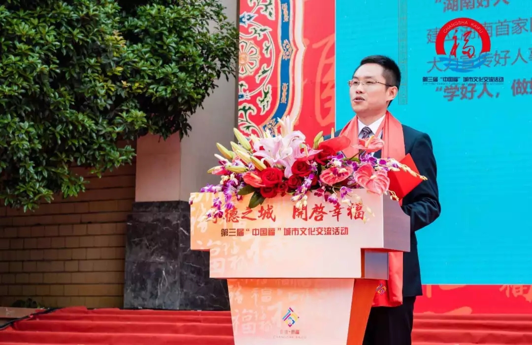 国内外福文化研究专家、学者和来自全国“福”文化城市联盟的嘉宾代表齐聚一堂共论福文化,长沙市开福区 “身边好人”、道德模范、群众代表出席活动。开幕式上,中共开福区委副书记、区长刘拥兵致欢迎辞,中国福文化研究专家省政协文教卫体和文史委主任毛学军作精彩发言,中共开福区委副书记谢伟峰做开福区城市推介。