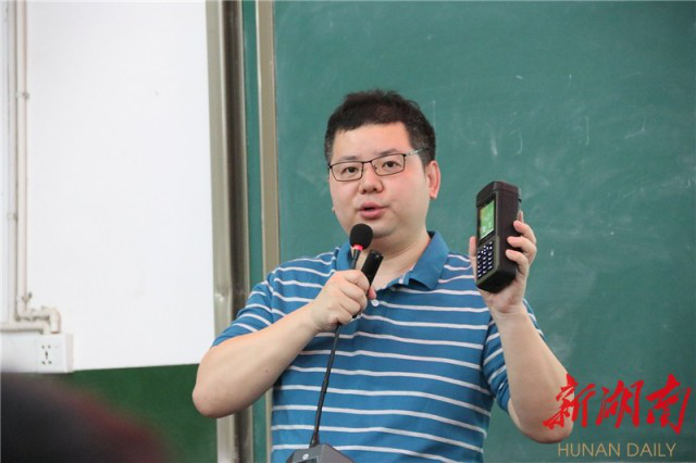 揭牌仪式结束后,电信专家吴鹏博士还为学生们讲解了北斗卫星导航系统,并现场演示了相关先进设备。