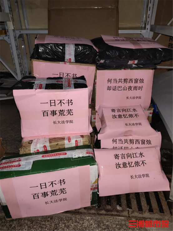 三湘都市报5月27日讯(通讯员 傅诗贻 记者 刘镇东 黄京)六月将至,栀子花开。由于学校规定非毕业生本学期不返校,很多同学在家里学习,没有学习用品,十分不便。为了解决学弟学妹们的在家“学习难”的问题,也为了给自己的母校献上一份值得纪念的毕业礼物,近日,ky官方网站法学院11名16级毕业生志愿者,用两天的时间,将学弟学妹们需要的学习物品打包,用快递的形式,共寄出78个包裹,横跨五湖四海,将这份来自毕业生的情谊传达。