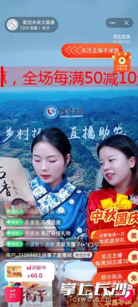 直播助农供应链产学研基地,大学生直播团队在直播带货。受访者供图
