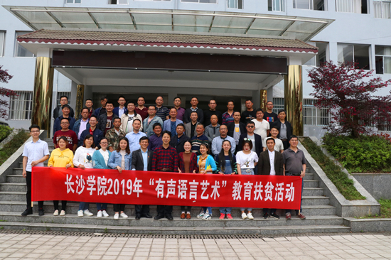 为贯彻落实《国家通用语言文字法》和《国家中长期语言文字事业改革和发展规划纲要(2012-2020)》要求,配合湖南省“推普脱贫攻坚行动计划(2018-2020)”的实施,加快湖南省语言文字人才工作队伍建设,湖南省语言文字培训测试中心2020年7月中下旬面向全省8个市州举办了湖南省第四期贫困地区中小学语言文字骨干教师研修班。受湖南省语言文字培训测试中心选派,7月5日-27日,荣斌和教学团队成员有时冒着三十八九度的酷暑高温,有时又是顶着狂风暴雨,有时还披星戴月连轴转,在岳阳市岳阳县、益阳市南县、衡阳市南岳区、常德市、永州市、怀化市、吉首市、张家界市桑植县等八个地州市,为1000余名贫困地区的中小学语言文字骨干教师提供专业课程教学讲座和实训辅导服务。教学中,他一站就是一上午,又一站一下午,说不累那是假的,但看到每一场积极踊跃的互动,每一场主动要求的拖堂,每一双如饥似渴的眼睛,荣斌和教学团队成员不再觉得苦累。学员们珍惜课堂上的每一秒钟,认真地记着每一个知识点……八个市州的语言扶贫行动,为湖南培育了一批在普通话教育教学、经典诵读工程推广实践中发挥作用的“种子”,助推了湖南语言文字事业进一步科学发展,助力湖南脱贫攻坚。