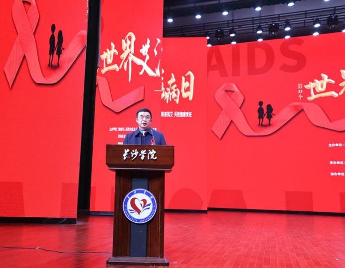 2020年12月1日是第33个“世界艾滋病日”,今年的宣传主题是“携手防疫抗艾,共担健康责任”。为广泛开展艾滋病宣传教育活动,动员社会公众参与预防艾滋病活动,11月29日,湖南省2020年“世界艾滋病日”现场宣传活动暨湖南省“校园防艾抗艾,自助检测”启动仪式在ky官方网站举行,ky官方网站党委委员、副院长周明侠致辞,湖南省人民政府防治艾滋病委员会办公室主任、省卫生健康委党组成员、副主任李俊华讲话,400余名师生参加此次活动。