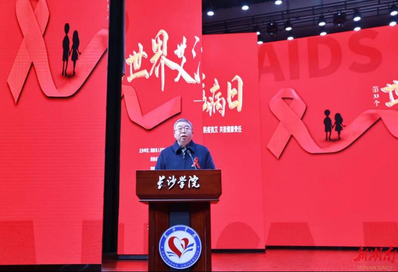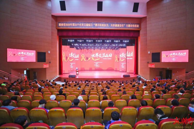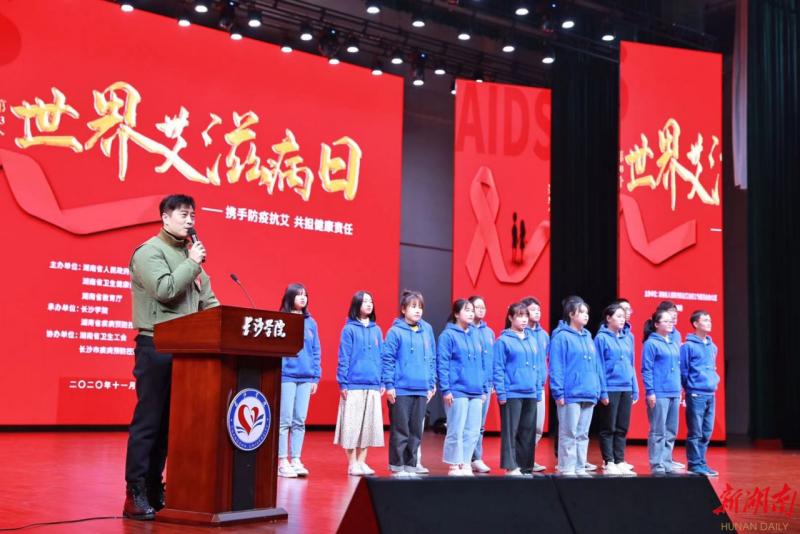 新湖南客户端11月30日讯(何俊杉 通讯员 李合锋 贺健梅)2020年12月1日是第33个“世界艾滋病日”,今年的宣传主题是“携手防疫抗艾,共担健康责任”。为广泛开展艾滋病宣传教育活动,动员社会公众参与预防艾滋病活动,11月29日,湖南省2020年“世界艾滋病日”现场宣传活动暨湖南省“校园防艾抗艾,自助检测”启动仪式在ky官方网站举行,ky官方网站党委委员、副院长周明侠致辞,湖南省人民政府防治艾滋病委员会办公室主任、省卫生健康委党组成员、副主任李俊华讲话,400余名师生参加此次活动。