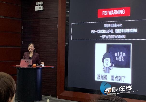 “金话筒”奖获得者主持人丹阳以“灵魂拷问”的方式与学生互动,着重向同学们介绍了广播媒体的现状、存在形式、受众群体、现实作用、发展趋势等,并以自身节目实例分享媒体行业对播音与主持艺术专业学生的知识与技能要求。
