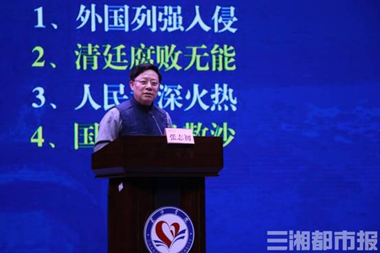 会上,湖南省委党史学习教育宣讲团成员、湖南省政府参事室特约研究员张志初教授受邀作党史学习教育专题辅导。他以《领航百年正青春——党史告诉我们什么》为题,从百年之前,长夜难明赤县天;百年之路,雄关漫道真如铁;百年之悟,人间正道是沧桑三个篇章入手,全面阐述了中国共产党艰难曲折、奋勇拼搏、改革创新、自我革命的发展历程和成功经验,以及其中蕴含的深刻历史启示。张志初的讲述结合了大量鲜活的案例,深入浅出地给与会人员上了一堂思想深邃、脉络清晰、精辟透彻的党史教育课。