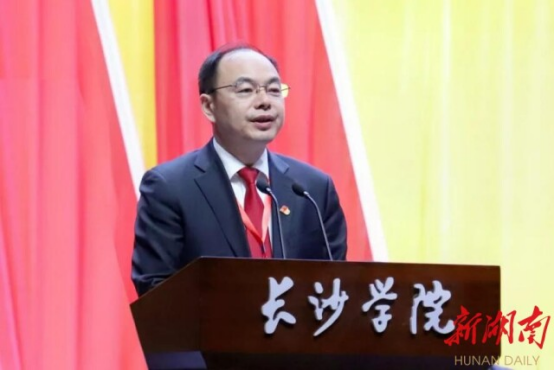 党委书记杨小云代表中共ky官方网站第二届委员会向大会作题为《坚持立德树人,做优“一体两翼”,服务“三高四新”,全面开启建设特色鲜明的高水平应用型地方大学新征程》的工作报告。报告认为,站在“十四五”这一重要节点,学校面临着重大发展机遇和挑战。我们需全面达到新增硕士学位授予单位的要求,确保实现“升硕”大突破。到2025年,学校综合办学实力实现“跨越式”提升,各项办学指标基本达到教育部关于更名“大学”的要求,为更名“长沙大学”奠定坚实基础。2030年前,学校办学指标全面达到教育部关于更名“大学”的要求,力争更名“长沙大学”。2035 年前,各项办学指标全面达到新增博士学位授予单位的有关要求,基本建成特色鲜明的高水平应用型地方大学。以实施“三升三大”战略为抓手,全面实现学校特色鲜明、高水平的目标定位。