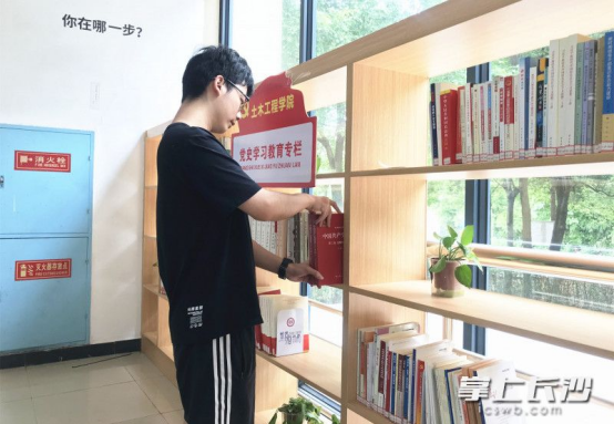 “2019年,学院在教学楼一楼的空闲处安装上精致典雅的书架,点缀上各种各样的盆栽,打造了一处开放式‘图书角’,可供同学们在课间、午休和放学后自由取阅,也为大家提供了一个自主学习、小型会议、团体辅导的场所。”土木工程学院团总支书记李晗介绍,“图书角”的大部分书籍由学生捐赠,从最开始的几百册到现在的3000多册,除了各类学科知识、名人传记和文学著作,今年还设立了“党史学习教育专栏”,数百本党史书籍陈列在书架中,为师生提供了一个红色学习的场所。