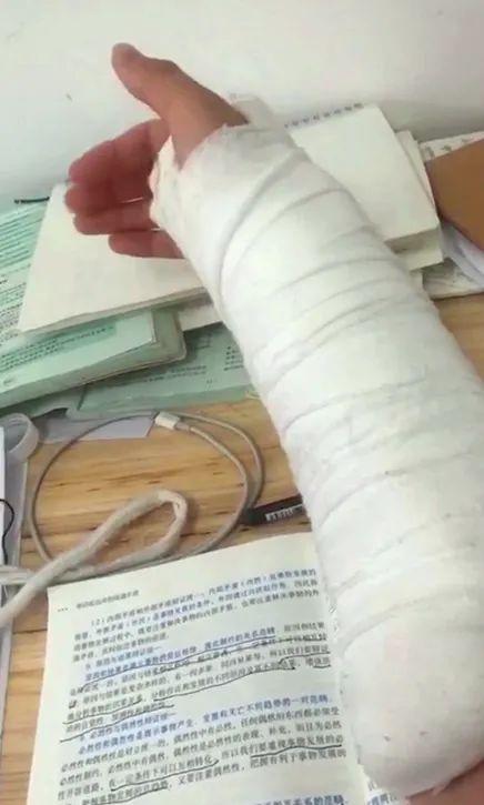 正当一切按部就班地进行着,考前一个月,王宏雨的右手突然在训练中粉碎性骨折,不但无法随队参加省赛,考研也受到了影响。临上初试考场,王宏雨才拆了石膏,勉强能用右手写字,复试时为了准备篮球技能展示,王宏雨忍着伤痛练习左手投篮。