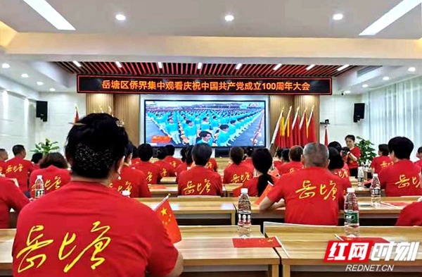 湘潭市侨联、岳塘区侨联组织侨眷及侨界代表及云峰社区党员代表观看庆祝中国共产党成立100周年大会。