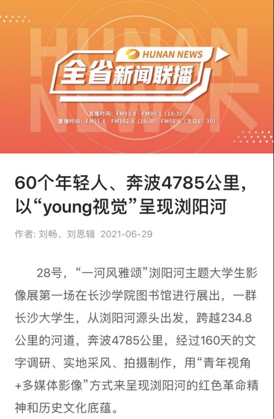 湖南电台《全省新闻联播》:60个年轻人、奔波4785公里,以青春“young视觉”呈现浏阳河