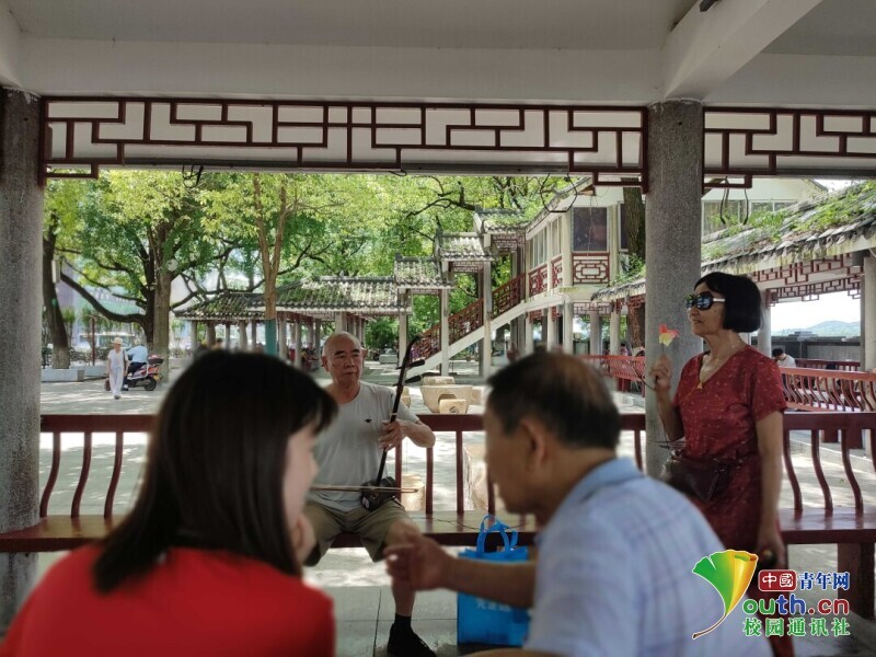 图为“情'戏'花鼓”暑假社会实践团成员在对花鼓戏爱好者采访。