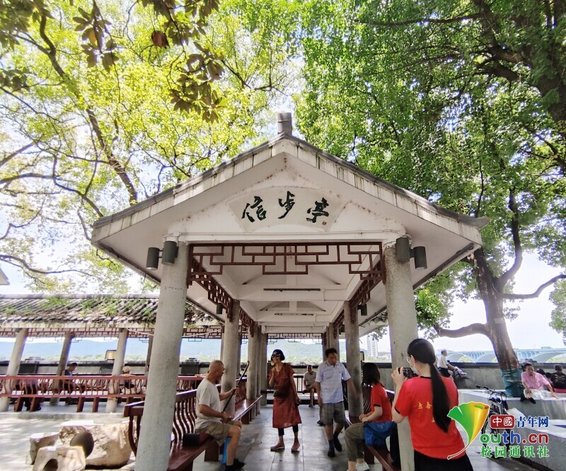 图为“情'戏'花鼓”暑假社会实践团成员在湘江中路看花鼓戏爱好者表演。