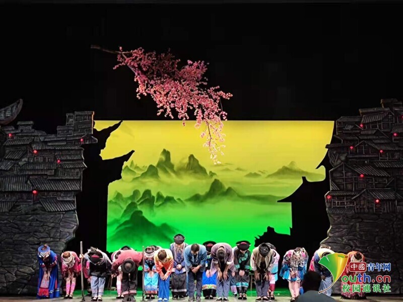 图为“情'戏'花鼓”暑假社会实践团成员观看花鼓戏《桃花烟雨》。