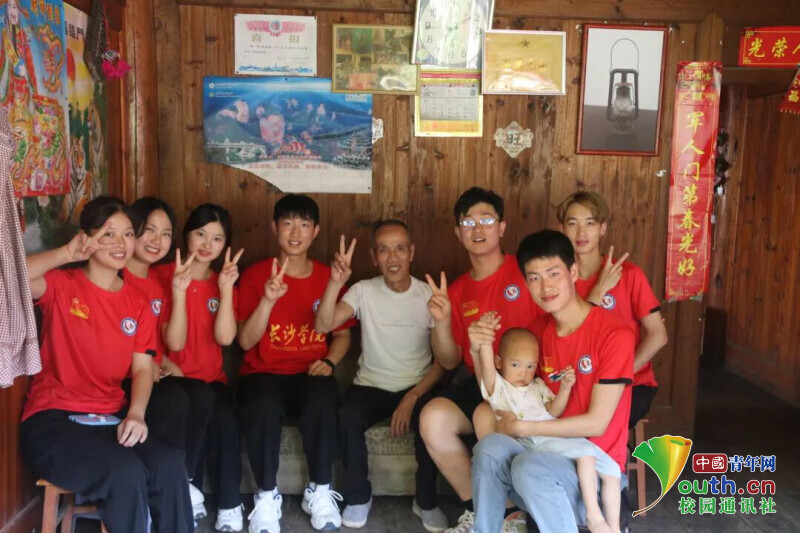 图为采访后实践团队员代表与杨正益爷爷合影。中国青年网通讯员 丰一帆 摄