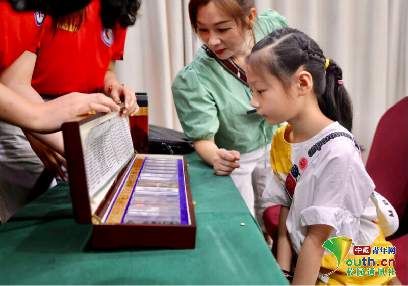 图为小朋友正在观看毒品模型。中国青年网通讯员张楚政摄