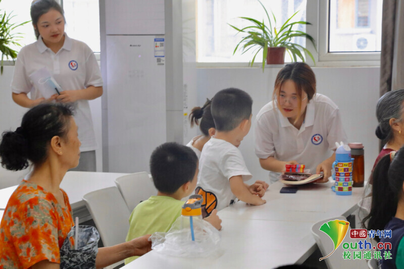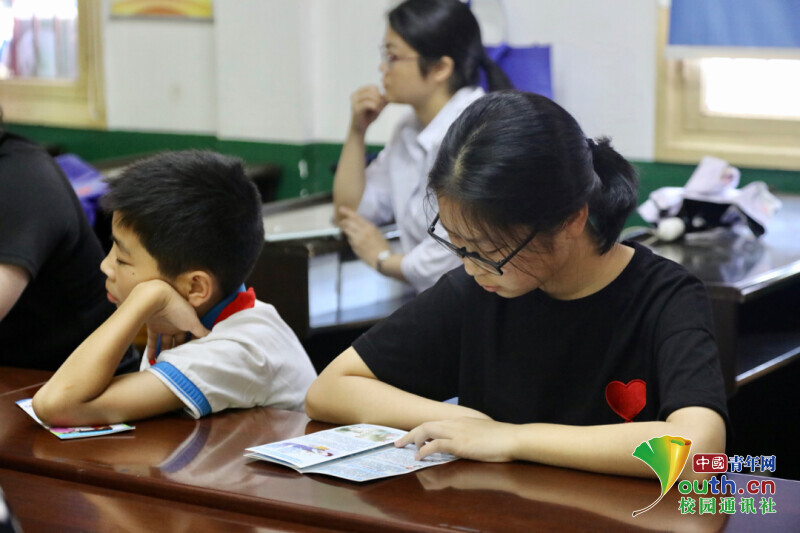 图为大学生志愿者培训小小志愿者。中国青年网通讯员张楚政摄
