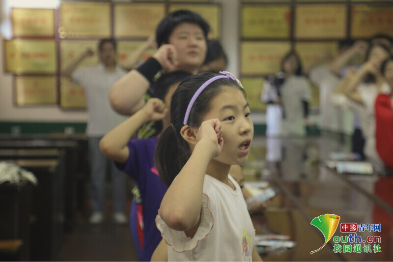图为边山社区小朋友认真进行抵御毒品宣誓(中国青年网通讯员张楚政摄)