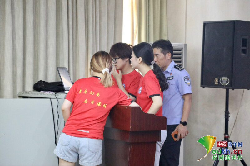 图为志愿者与民警一起探讨禁毒知识(中国青年网通讯员张楚政摄)