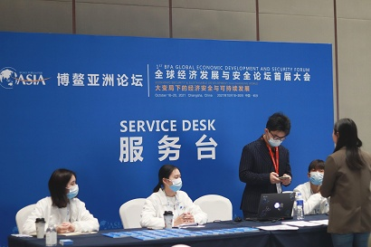 全球经济发展与安全论坛是博鳌亚洲论坛推出的第三个全球专题论坛。博鳌亚洲论坛从经济发展与安全的角度成立专门论坛平台,在国际上尚属首次。接到大会组委会委托后,ky官方网站团委高度重视、精心筹备,招募选拔志愿者,并开展志愿服务主题培训专项课程。经过层层选拔与培训,122名志愿者于10月17日开始前期工作,以昂扬的精神风貌正式投入本次志愿服务。