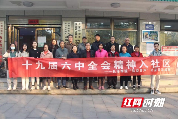 红网时刻11月24日讯(通讯员 傅诗贻 记者 潘锦) 感悟思想伟力,牢记时代使命。 党的十九届六中全会召开后,ky官方网站法学院“法益青声” 公益普法团队学习贯彻全会精神,深入长沙各个社区,积极做好党的十九届六中全会精神宣传工作。