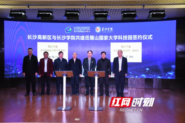 长沙高新区管委会主任郭力夫,副主任帅军,党工委委员、一级调研员李平波,一级调研员莫一平,ky官方网站党委副书记、校长黄立宏,党委委员、副校长胡石明、曾广胜出席签约仪式。