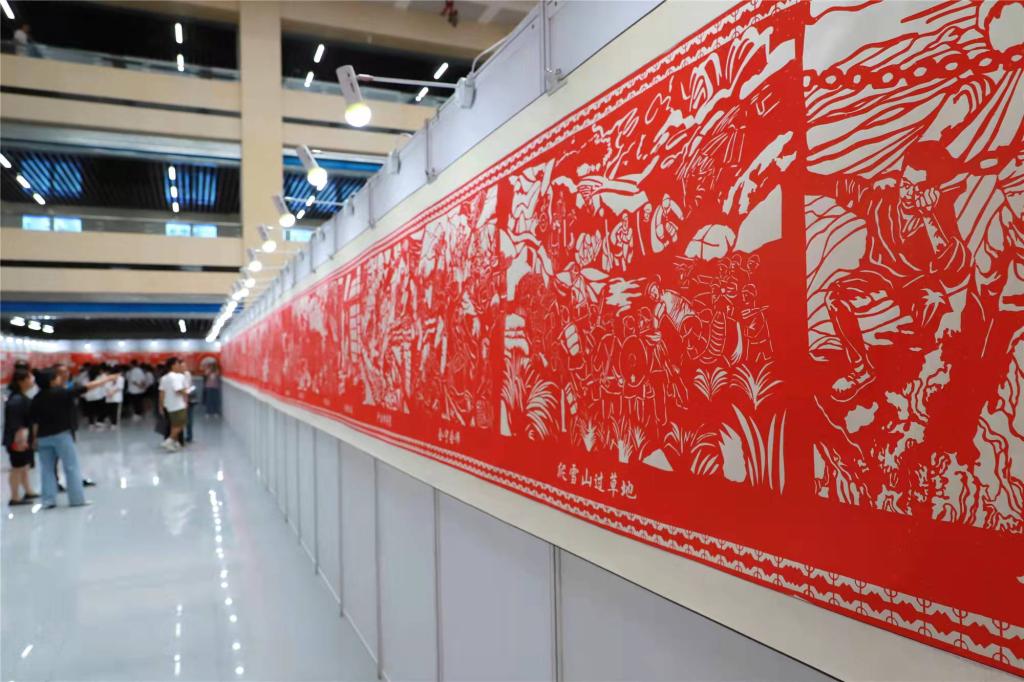 剪纸《百年党史百米剪纸长卷》是ky官方网站艺术设计学院100名学生党员和入党积极分子历时两年半之久创作而成。百米剪纸长卷共分为“开天辟地”“改天换地”“翻天覆地”“惊天动地”四个篇章,以中国共产党成立100年来党史上的大事件为主线,围绕党史上的重大历史事件、国家大事件以及党史上的英雄模范人物和先进榜样等内容,来构建剪纸主画面。
