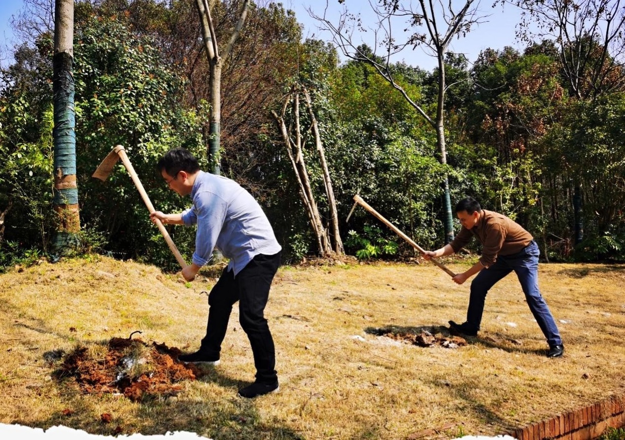 众人植树,树成林。在党员同志们的不懈努力下,一株株红叶石楠,一棵棵茶树小苗在植树草地上安了新家,沐浴在党性的春风细雨中茁壮成长。同志们纷纷在自己种下的树苗上挂上了自己签名的认养标志牌,都期盼它们早日枝繁叶茂。