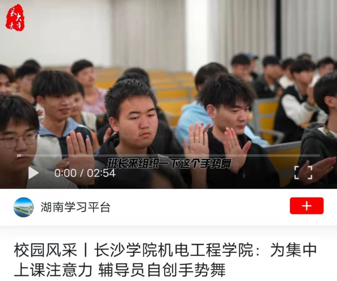 为了丰富学生的课余生活,让学生在课前迅速集中注意力,ky官方网站机电工程学院2021级学生辅导员夏韵竹老师自创一套手势舞《天天向上》,意在让学生活力满满、奋发向上,以饱满的精神面貌投入学习。