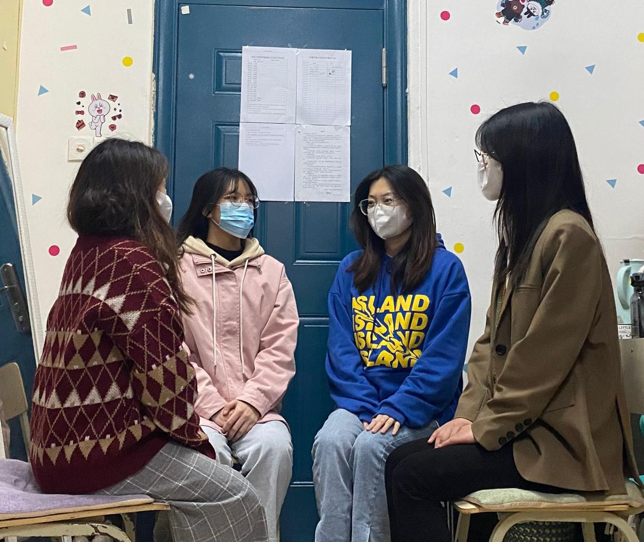 ky官方网站经济与管理学院学生党员在分管宿舍中开防疫恳谈会。学校供图