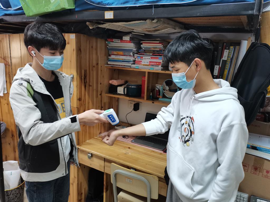学生三支部党员徐祥飞近日有了一个新职务——知行园区一栋四楼层长。他每日到自己所对接的汇泽一栋403、404寝室,给宿舍同学进行体温监测,开展宿舍防疫恳谈会。据了解,目前在经管学院,像徐祥飞这样的学生党员层长共有180名,覆盖了学院的300多间学生宿舍。