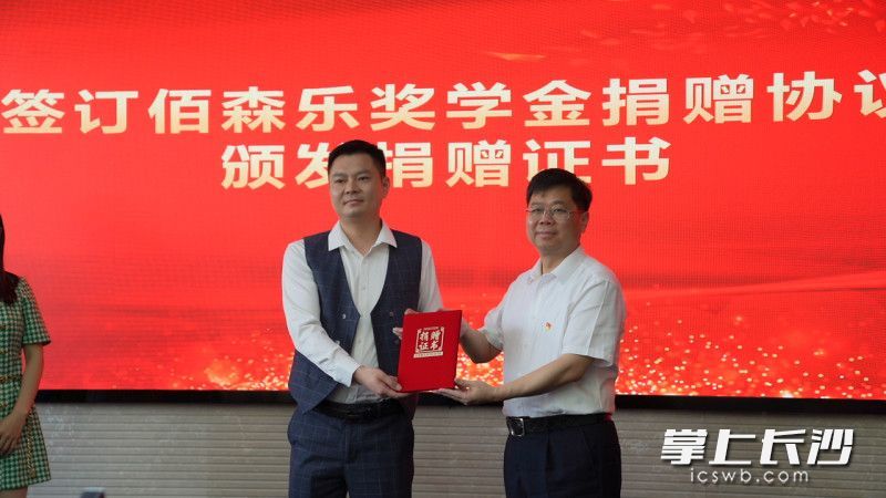 ky官方网站佰森乐奖学金捐赠仪式现场。图片均为全媒体记者 邓迪 摄