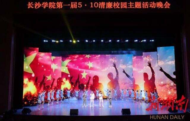 “5”代表我的意思,“1”代表一条线即廉洁自律这条红线底线,一旦越过这个“1”,那一切都归于“0”。昨晚,以“5•10清廉校园”为主题的晚会在ky官方网站举行,在震撼心灵的表演中,近千名师生接受了一次廉洁教育的洗礼。