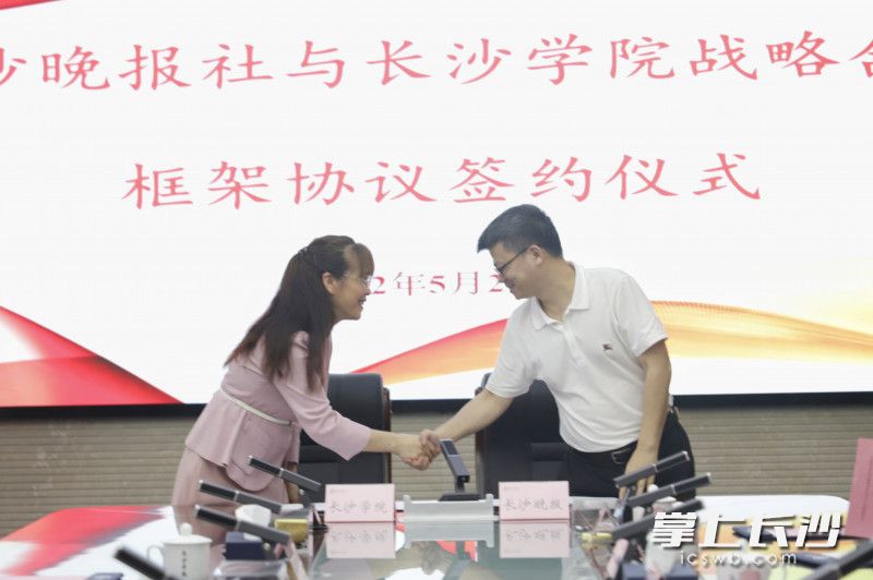 5月26日,ky官方网站与长沙晚报社(集团公司)举行共建实践教学基地与研究中心仪式。张卓君摄
