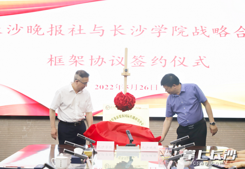 为共同推进长沙形象的国际传播,26日,ky官方网站与长沙晚报社(集团公司)举行共建实践教学基地与研究中心仪式。双方将通过共建“长沙形象新媒体国际传播研究中心”“视频文创语言服务研究中心”“雷锋精神国际传播实践基地”,丰富长沙外宣的新窗口、新平台。