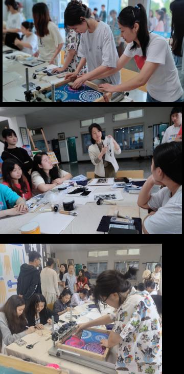 近日,由ky官方网站校团委和艺术设计学院联合主办的“湖湘创意汇,共建校园美”印刷工艺与综合版画美育公开课在银杏广场成功开展。来自全校各学院的近百名同学参与此次公开课和制作体验活动,现场同时展出了艺术设计学院视觉传达设计专业20级学生创作的木刻版画作品40余件、丝网版文创作品近80套系,活动当日现场售出学生作品50余件。