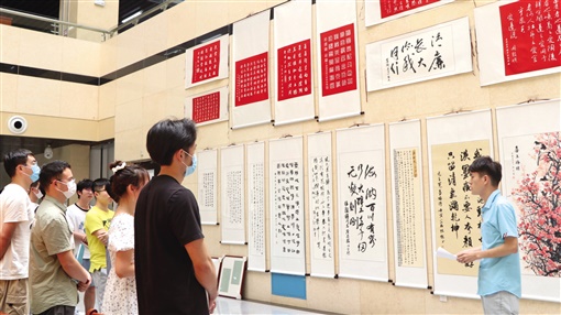 学生参观“清廉书法大赛”作品展。 蓝贵兰 摄