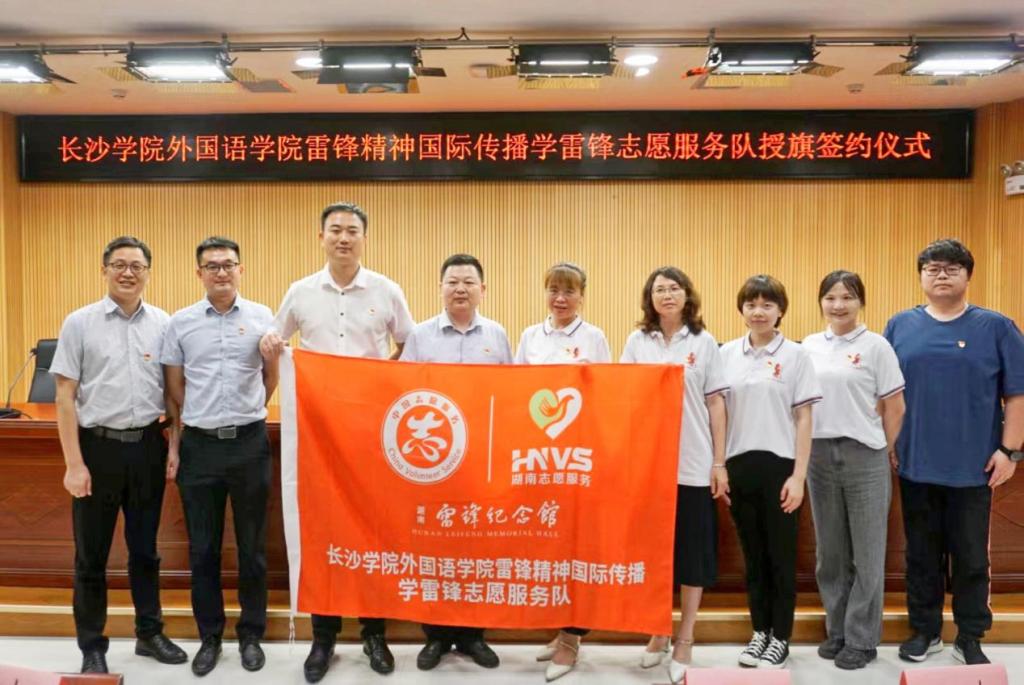 为弘扬和践行雷锋精神,倡导奉献、友爱、互助、进步的文明新风,动员社会各界力量积极参与志愿服务活动,充分展现湖南志愿者风采风貌,6月29日下午,ky官方网站外国语学院与湖南雷锋纪念馆隆重举行ky官方网站外国语学院雷锋精神国际传播学雷锋志愿服务队授旗仪式,并签订联盟共建协议。