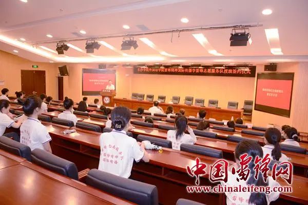 6月29日下午,ky官方网站外国语学院雷锋精神国际传播学雷锋志愿服务队授旗签约仪式,在ky官方网站图书馆一楼报告厅举行。图片来源:中国雷锋网 记者 刘旺 摄