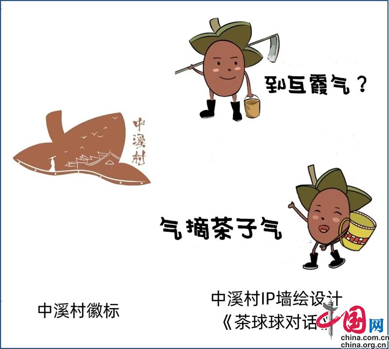 在前期详实调研的基础上,实践团文创小组20级动画专业何璐呈、黄丽霖同学,在研究院和艺术设计学院老师的指导下,根据原生文化的美学特征、人文精神,选取中溪村油茶产业、落衣溪、七孔桥、高腔、特色古建筑等文化元素,共同设计创作了中溪村徽标。同时,结合当地“黑”转“绿”产业转型故事,以油茶籽的外壳、颜色形状为基础,将油茶籽拟人化,进行文化创意,设计了中溪村IP形象及一系列周边文创作品,十分俏皮生动,深受当地人民喜爱和认可。