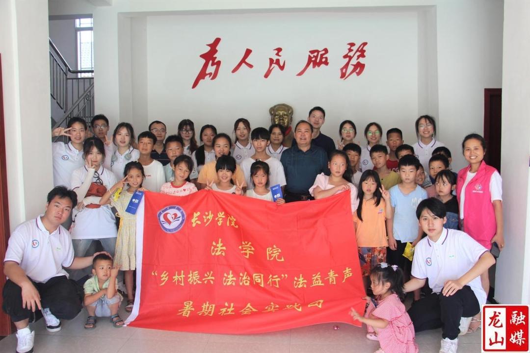 7月6日上午,实践团队前往“全国民主法治示范村”茨岩塘镇甘露村开展普法调研活动,并进行联席座谈会、红色文化遗址研学等活动。“法益青声”普法团队成员通过“情景剧——模拟法庭——普法宣讲”“三部曲”的普法宣传活动为在场中小学学生与家长奉上了一场以防校园欺凌为主题的法律知识盛宴。