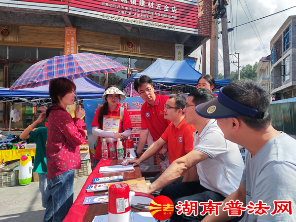 “学好用好民法典,生活美好多一点”“民法典与我们日常生活息息相关”......夏日的茨岩塘镇集市传来了阵阵吆喝声,吸引了过往群众“强势围观”,原来是这里的普法“摊位”开张了。为进一步让民法典宣传在村民群众的日常生活中“沉下去”“活起来”,7月7日,龙山县司法局茨岩塘司法所联合ky官方网站法学院“法益青声”赴龙山普法调研团在茨岩塘镇人群密集处设立普法“摊位”,提供法律咨询、宣讲法律知识、解答群众法律问题以及表演法治情景剧,为辖区村民送上了一道“法治大餐”。