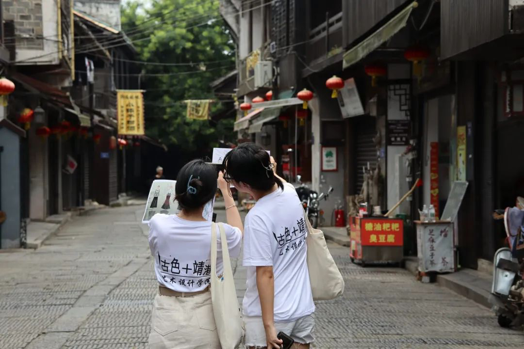 7月15日-7月21日,在ky官方网站校团委、艺术设计学院等部门的大力支持下,ky官方网站艺术设计学院12名同学在樊晶、易群燕两位老师的指导和带队下,组建“古色+靖港”三下乡团队,在长沙市望城区靖港古镇开启了为期7天的湖湘古镇文化暑期社会实践调研活动。团队旨在成员运用自己所学的服饰设计、视觉传达设计、动画设计和环境设计等专业知识,结合湖湘古镇群落的文化内涵,设计、创作出符合当今时代发展的极具湖湘特色的新中式服装类作品,促进湖湘古镇文化的创新发展。
