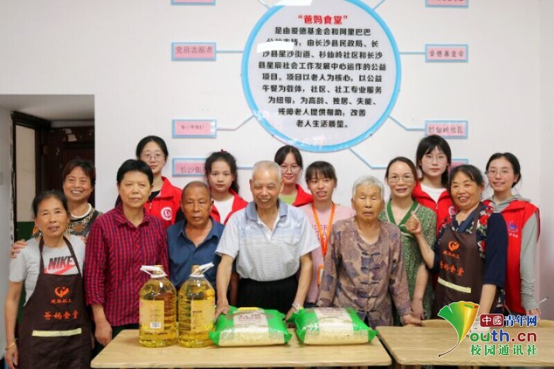 图为实践团成员去到“爸妈食堂”看望老人并送去大米和食用油。中国青年网通讯员 钟佳雨 摄